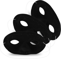 Črna maska z enostavnim dizajnom, primerna za različne priložnosti.