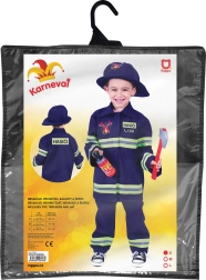 Oblecite malega gasilca v kostum, ki pritegne na prvi pogled. Češki napis HASIČI poskrbi za avtentičen videz, udoben kroj pa omogoča brezskrbno igro in veselje na karnevalu. Velikost S je primerna za otroke, stare 4–6 let, in višine 105–116 cm.