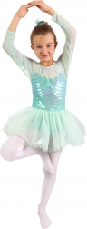Premišljen kroj omogoča svobodo gibanja tako pri treningu kot pri nastopih. Dolgi ali mrežasti rokavi ter puhasto tutu krilo ustvarjajo klasičen baletni videz, ki očara na prvi pogled.