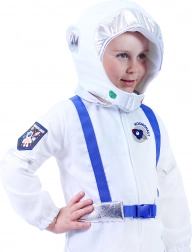 Bela kombinezon s srebrnimi elementi in našitki ustvarja realističen “space” videz, ki navduši vsakega malega raziskovalca.