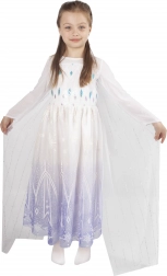 Očarljiv kostum za male ljubiteljice zimskih pravljic. Zgornji del, okrašen z bleščicami, čudovito sije, medtem ko lahko tilasto krilo z belo-vijoličnim potiskom in dolga vlečka obleki dodajata kraljevsko eleganco. Idealno za pust, rojstnodnevna praznovanja, gledališke nastope in čarobno preoblačenje doma.