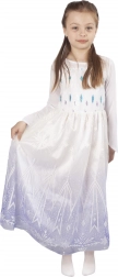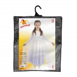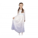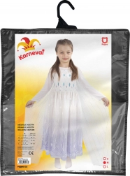 Stilski dekliški kostum zimske kraljice prinaša pravljičen videz s kombinacijo bele barve, vijoličnih tonov in sijaja. Zgornji del je okrašen z bleščicami, od pasu se razpira zračno tilasto krilo z nežnim potiskom, celoten vtis pa poudari vleček z dekoracijami.