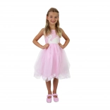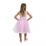 Rožnata obleka labodje princese prinaša čarobnost v vsak dan. Lahkotna tilasta plast čez satenasto podkrilo ustvari naduvan videz, krilo pa se ob gibanju čudovito ziblje. Zgornji del z motivom laboda deluje nežno in elegantno, zato se bo vaša deklica počutila kot prava princesa.