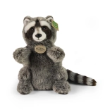 Prisrčna plišasta ročna lutka rakuna višine 28 cm iz kolekcije RAPPA prinaša realistično izvedbo, ročno izdelavo in okolju prijazno polnilo iz recikliranih PET plastenk. Idealna za domišljijsko igro, družinsko gledališče in crkljanje – varna in nežna tudi za najmlajše otroke.