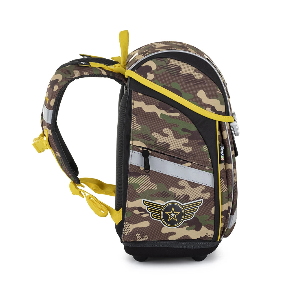 Ergonomsko oblikovano hrbtišče iz zračnega materiala, široke podložene naramnice ter zatezni in prsni trakovi zagotavljajo stabilen oprijem nahrbtnika in enakomerno porazdelitev teže. Odsevni elementi povečujejo vidnost v mraku in dežju, zato je pot v šolo varnejša.