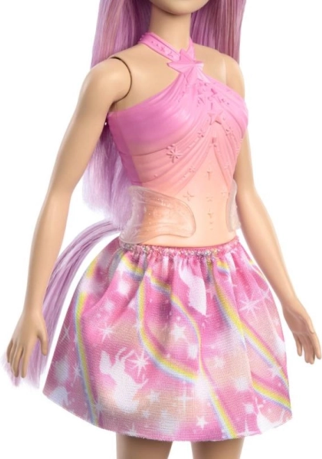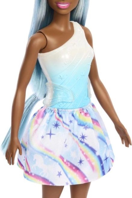 Ta čarobna punčka Barbie prinaša v igro mavrico barv in neskončne možnosti oblikovanja. Čudoviti dolgi lasje v modrih odtenkih, obroč s samorogom in ombré top z usklajenim krilom z motivi zvezdic in mavrice jo naredijo za zvezdo vsake otroške zbirke.