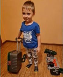 Delovna orodja, kot so ključ, kladivo in žaga, izgledajo kot prava, kar spodbuja igro vlog in razvoj domišljije.