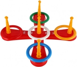 Ta igra metanja Križ s krogi je popolna kombinacija zabave in učenja. Odličen način za treniranje koordinacije rok in oči otrok med igro. Igra vključuje križno osnovo s petimi stojali in pisane kroge, ki jih je treba metati na stojala za pridobivanje točk.