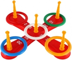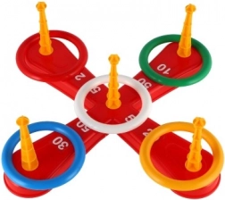 Igra vsebuje križno osnovo in pisane kroge za zabavno metanje.