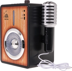 Otroški karaoke ojačevalnik prinaša odlično kombinacijo glasbe, luči in igralnih funkcij. Nadzorni gumbi so pregledni, glasnost nastavite z vrtljivim gumbom, po vklopu pa otroke pozdravi vesela melodija s svetlobnim šovom. Priključite mikrofon, vklopite rock pesmi ali otroške melodije in šov se lahko začne.