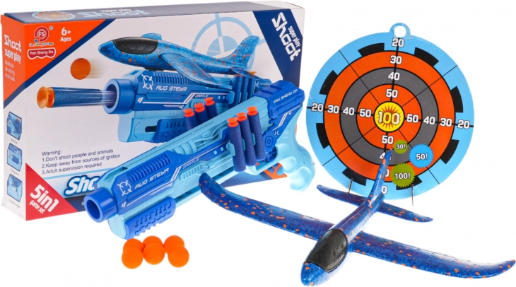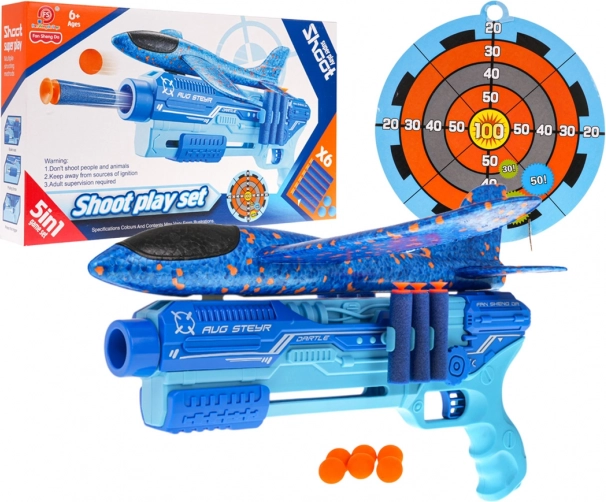 Strelni set 5v1 z izstreljevalnim letalom – moder