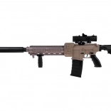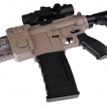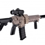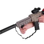 Lahka konstrukcija iz odporne plastike in nastavljiv sprednji oprijem povečujeta udobje pri igri. Pomična optika pomaga k natančnejšim zadetkom na daljše razdalje, medtem ko odstranljiv nabojnik omogoča hitro dopolnjevanje municije. Priložena sta akumulator 3,7 V/500 mAh in polnilnik, zato se lahko v akcijo podate takoj po polnjenju.