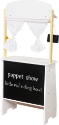 Zložljive stene in zavese spremenijo stoj v lutkovno gledališče. Otroci lahko pripovedujejo zgodbe, krepijo samozavest in razvijajo ustvarjalnost.