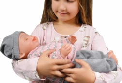 Ta interaktivna punčka iz kolekcije NATALIA COLLECTION združuje klasično zabavo z modernimi funkcijami. Po pitju iz stekleničke dojenček res sede na kahlico in lula, na pobožanje trebuščka se odzove z veselým smehom in brbljanjem, ob polaganju zapira oči ter oddaja pomirjujoče zvoke.