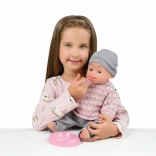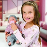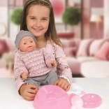 Mehke, gibljive roke in noge ter prikupna oblačila v rožnato-sivih tonih spodbujajo igro skrbi. Velikost 43 cm je idealna za majhne otroške roke.