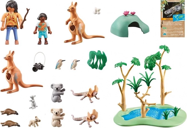 - 2 figurici, kenguru z mladičem, koale, kookaburre, kljunatič, kuščar z ovratnikom in drugi dodatki