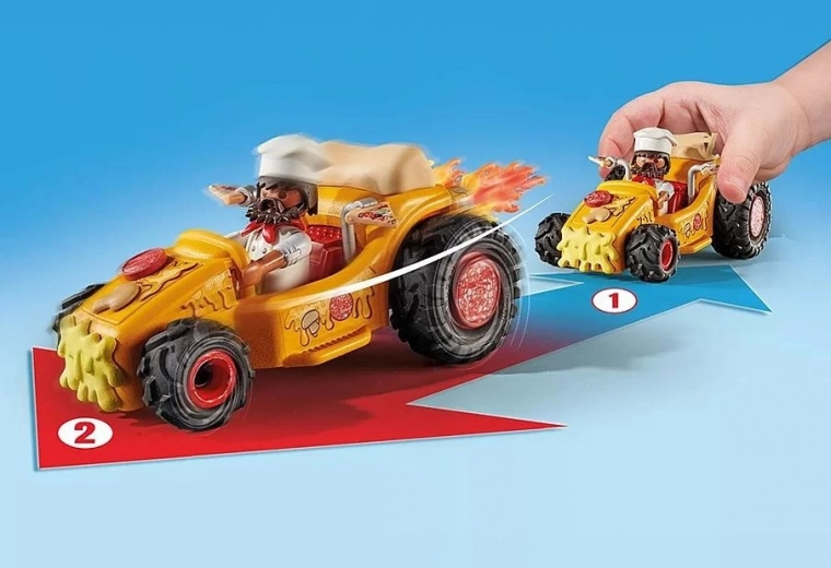 Na start, pripravljeni… Pizzaman s svojim sveže “pečenim” gokartom švigne naprej in poteši lakoto po adrenalinu. PLAYMOBIL Funstars ponuja hitre dirke, slalom med ovirami in nore trike – domišljija ne pozna meja.