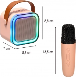 Uživajte v spontanem petju kjerkoli – kompakten rožnat zvočnik z usnjenim paščkom se zlahka prenaša in ponuja čist zvok z močjo 6 W. RGB osvetlitev s 5 načini poudari vzdušje zabave, medtem ko 2 brezžična mikrofona omogočata petje v dvojici brez omejitev kablov.