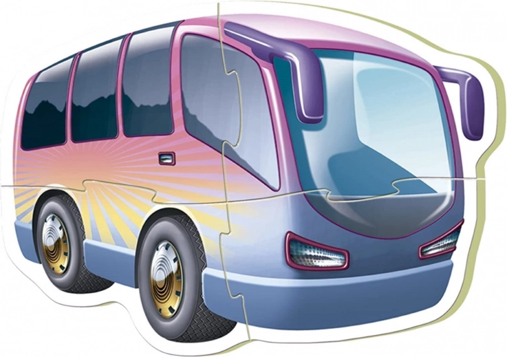Ta komplet vsebuje pet postopnih sestavljank z motivi priljubljenih vozil – od avtobusa do gasilskega vozila. Zaradi postopno naraščajoče težavnosti (3, 4 in 5 koščkov) otroci naravno urijo logično razmišljanje in potrpežljivost. Vesele barve in prijazne ilustracije ohranjajo njihovo pozornost in spodbujajo veselje do odkrivanja.