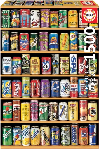 Educa sestavljanka Pločevinke 1500 kosov z brezplačnim lepilom. Kakovostna izdelava, velikost po sestavi pribl. 60 × 85 cm. Odlična tako za izziv kot dekoracijo.