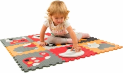 Pena sestavljanka z živalskimi motivi v kombinaciji sive in rdeče je odlična izbira kot igralna preproga za otroško sobo ali dnevni prostor. Posamezne slike so sestavljene iz pet do osmih odstranljivih delov, zato si otroci urijo fino motoriko in logično razmišljanje. Podloga je mehka, varna, enostavna za vzdrževanje in zaradi izolacijskih lastnosti ščiti pred hladnimi tlemi.
