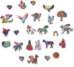 Odkrijte čar sestavljanja z leseno sestavljanko Mavrični Samorog, zasnovano za navdušence vseh starosti. Ta sestavljanka ponuja:
