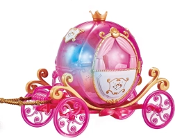 Ta elegantna kočija, okrašena z zlatimi detajli in rožnatimi kolesi, je sanje vsake male princese in omogoča bleščečo igro.