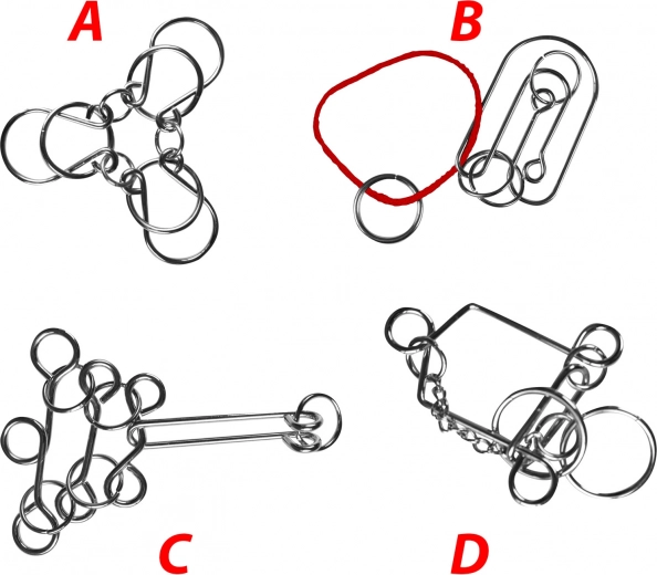 Ta set vključuje štiri unikatne kovinske uganke, ki bodo preizkusile vašo logično razmišljanje in fino motoriko.