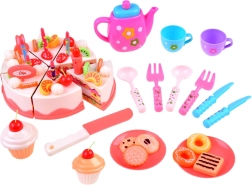 Omogočite svojemu otroku, da pripravi nepozabno zabavo s tem velikim otroškim kompletom, ki vsebuje vse potrebno za izdelavo rojstnodnevne torte. V kompletu je torta z možnostjo različne okrasitve, ki jo je mogoče razdeliti na koščke, ter druge sladice, kot so mafini, piškoti in drugo. Del kompleta je tudi nož za rezanje torte, krožniki, pribor in skodelice.