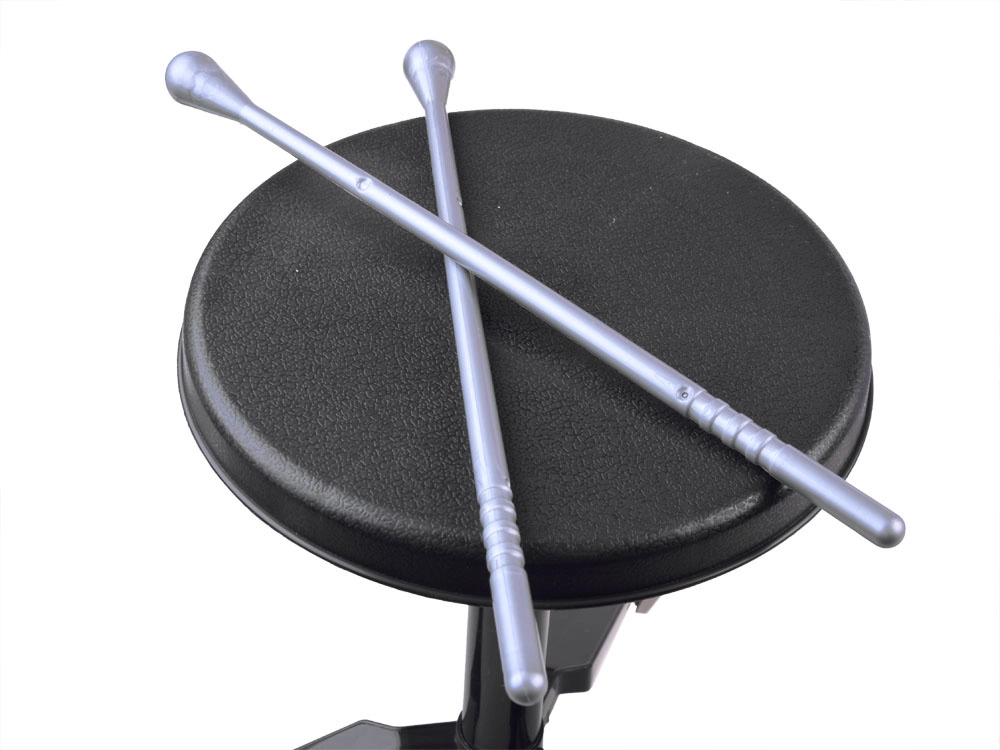 - Realistični elementi: činela s kovinskim zvokom, stabilen okvir in detajli, ki posnemajo prave bobne.