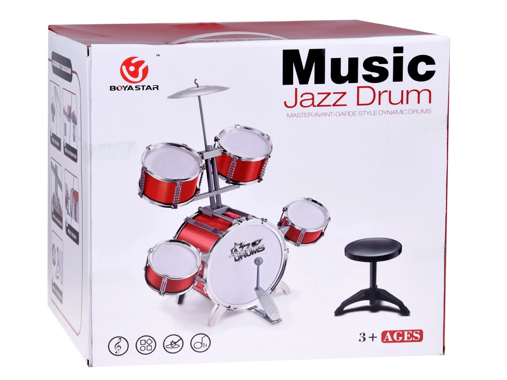 Vse v enem: pet bobnov, činela, pedalo, palici in stolček. Otrok lahko takoj začne igrati in odkrivati svet ritmov.