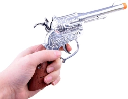 Revolverja imata oranžen konec za varno uporabo med igro.
