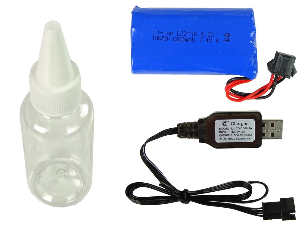 .Vozilo napaja baterija 7,4 V 1200 mAh, upravljalnik pa dve bateriji 1,5 V »AA« (nista priloženi). Igrača je primerna za otroke starejše od 3 let. Komplet ima CE certifikat in izpolnjuje standard EN 71.