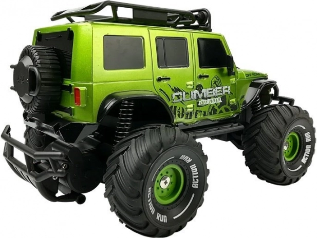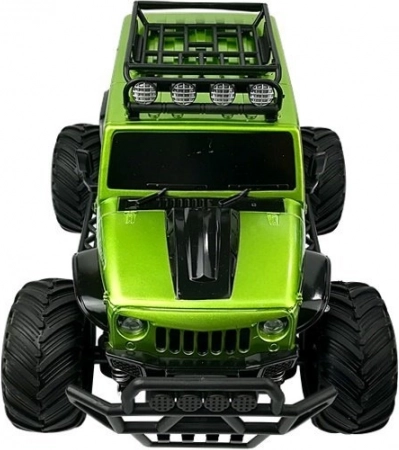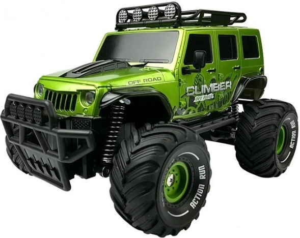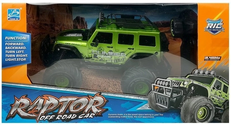 Terensko vozilo, ki premaga vsako oviro. Odlično obvlada vožnjo po asfaltu ter po neravnih kamnih ali gozdnih poteh. Mehke gumijaste gume zagotavljajo zadosten oprijem na različnih vrstah terena, veliki amortizerji pa mu omogočajo premagovanje zahtevnih ovir. Prikazani model je izdelan v merilu 1:18, zato izgleda neverjetno realistično. Daljinsko vodeno vozilo pozitivno vpliva na pravilen razvoj veščin vašega otroka, kot so upravljanje avtomobilčka, krepitev koncentracije in razvoj ročnih spretnosti. Velika kolesa, blažilniki udarcev in terenska zasnova so le nekatere prednosti tega avtomobila. V kompletu je udoben in natančen upravljalnik. Če ste kdaj upravljali profesionalni avto, veste, da ta tip daljinskega upravljanja omogoča kar največje užitke pri vožnji. Brezžični daljinski upravljalnik, ki je del seta, deluje na frekvenci 2,4 GHz, zato lahko dirkate v večji skupini brez skrbi glede medsebojnih motenj. Dodatna prednost so svetlobni učinki.
