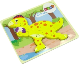 Zabavne lesene sestavljanke z motivi dinozavrov za otroke od 3 let. Deli iz kakovostnega lesa imajo debeline 5 mm za enostaven oprijem, žive barve in preproste oblike pa spodbujajo fino motoriko, koncentracijo in spomin. Na izbiro stegozaver ali oviraptor. Varna igrača v skladu z EN71.