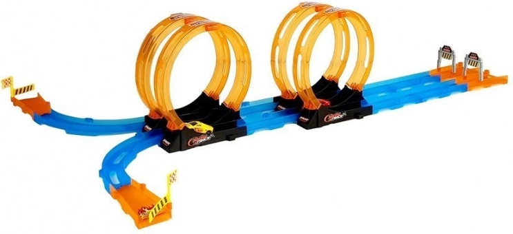 Ta barvita dirkalna proga z odličnimi zankami je ustvarjena za hitrost in akrobacije. Avtomobilčka z pull-back mehanizmom le potegnite nazaj, spustite in opazujte, kako s polno hitrostjo švigneta skozi štiri zanke. Proga ponuja zabavo za otroke od 3 let naprej ter spodbuja zdravo tekmovanje – kdo bo prvi v cilju?