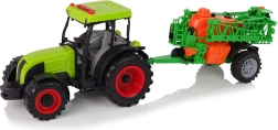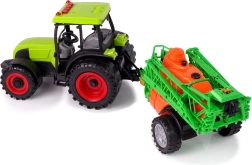 Prikolica s škropilnikom ima dve kolesi, enostavno se odklopi, njegovi kraki pa se razprejo v širok doseg – idealno za realistično kmečko igro.