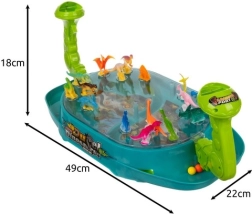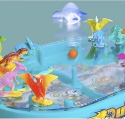 Zabavna namizna igra za 2 igralca, v kateri se v areni pomerijo mali dinozavri. Zahvaljujoč gladkim joystickom in strelskim gumbom ponuja hitro akcijo, natančno merjenje in napeto tekmovanje. Igra je varna za otroke od 3. leta, ima nedrseče podloge, prozoren pokrov proti izskakovanju kroglic in ne potrebuje baterij.