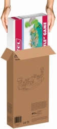 - 16 dinozavrov, igralna površina (arena), 24 kroglic, barvna škatla, transportni karton
