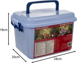 Priložen je trpežen kovček z ročajem, ki olajša shranjevanje in prenašanje celotne zbirke. Komplet je izdelan iz kakovostnega PVC in PP, izpolnjuje evropske standarde in je primeren za otroke od 3 let. Z 14 dodatki (kamni, skale, palme, debla) otroci zlahka ustvarijo realistična okolja in lastne zgodbe.