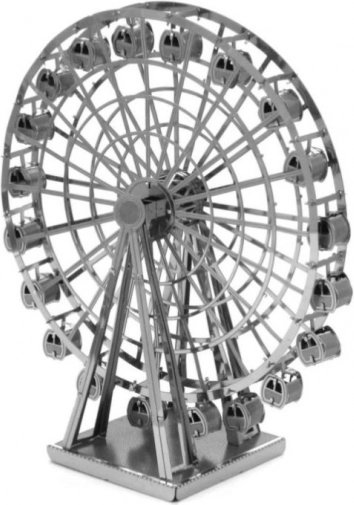 Sestavite ikonično atrakcijo v miniaturi iz 2 jeklenih ploščic velikosti 11 × 11 cm. Deli so natančno izrezani in okrašeni z laserskim graviranjem za verodostojen videz. Spajanje poteka s pomočjo pametnih zaponk – jezički se potisnejo skozi pripravljene odprtine in upognejo, zato lepilo ali barve niso potrebni. Orodje ni vključeno v paket.