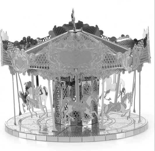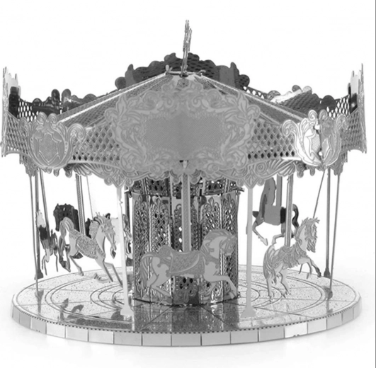 Odkrijte čar klasičnih sejmov v miniaturni obliki. Model vrtiljaka iz serije METAL EARTH je natančno izdelan iz jeklenih listov z nežnim laserskim graviranjem, ki dodaja realistične detajle konjičkom, strehi in okrasnim ploščam. Sestavljanje zahteva potrpežljivost in spretne roke, nagrada pa je izrazita dizajnerska dekoracija, ki izstopa na polici ali pisalni mizi.