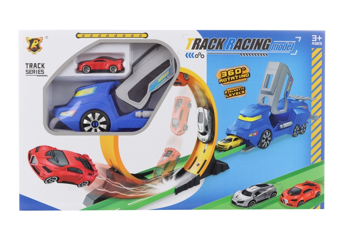 Pripravite se na vznemirljivo dirkaško avanturo z našim tovornjakom z izstrelitveno stezo! Ta barvit tovornjak služi kot baza za avtomobilček, ki se s pomočjo elastik zlahka izstreli in zapelje po stezi. Otroci bodo uživali v interaktivni zabavi in raziskovali različne možnosti, kako ustvariti najboljši dirkaški krog.