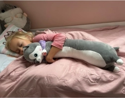 Iščete univerzalno igračo, ki bo razveselila in hkrati podprla miren spanec? Ta dolgi plišasti husky ponuja otrokom in staršem prav to, kar potrebujejo: izjemno mehkobo, popoln topli objem in varne materiale, primerne tudi za najmlajše. Odličen je kot ljubkovalec v posteljici, udobna blazina za hrbet ali kot stilska dekoracija otroške sobe.