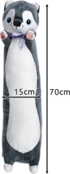 Ljubek in izjemno dolg plišasti pes husky znamke KRUZZEL je idealna prijazna igrača, blazina in dekoracija v enem. Zahvaljujoč dolinI 70 cm je popoln za objemanje, nudi mehko oporo med spanjem in je varen od rojstva (0+). Izdelan je iz kakovostnih, zračnih in trpežnih materialov, enostaven za vzdrževanje – možno pranje v pralnem stroju.