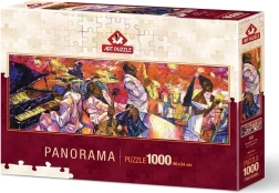 Panoramske sestavljanke ART PUZZLE Barve jazza prinašajo edinstveno vizualno doživetje za ljubitelje glasbe in kakovostnih sestavljank. S 1000 natančnimi kosi boste sestavili dolgo, dekorativno sliko, ki bo odlično izstopala na steni ali na mizi. Idealno za mirne večere ter za razvoj zbranosti in potrpežljivosti.