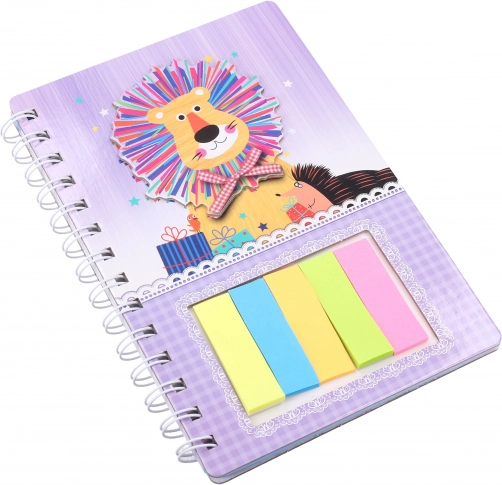 Ljubka beležnica s štirimi motivi živalic bo razveselila otroke in odrasle. Vsebuje 60 listov za zapisovanje in nalepke za poudarjanje pomembnih nalog. Praktičen format 12,1 × 18,5 cm se prilega v torbico ali nahrbtnik.