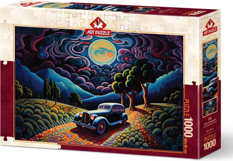 Sestavljanka 1000 kosov z motivom noči v Transilvaniji. Kakovosten tisk, natančen izrez, velikost 68 × 48 cm. Možnost pošiljanja manjkajočega kosa s strani proizvajalca.