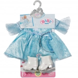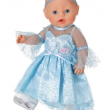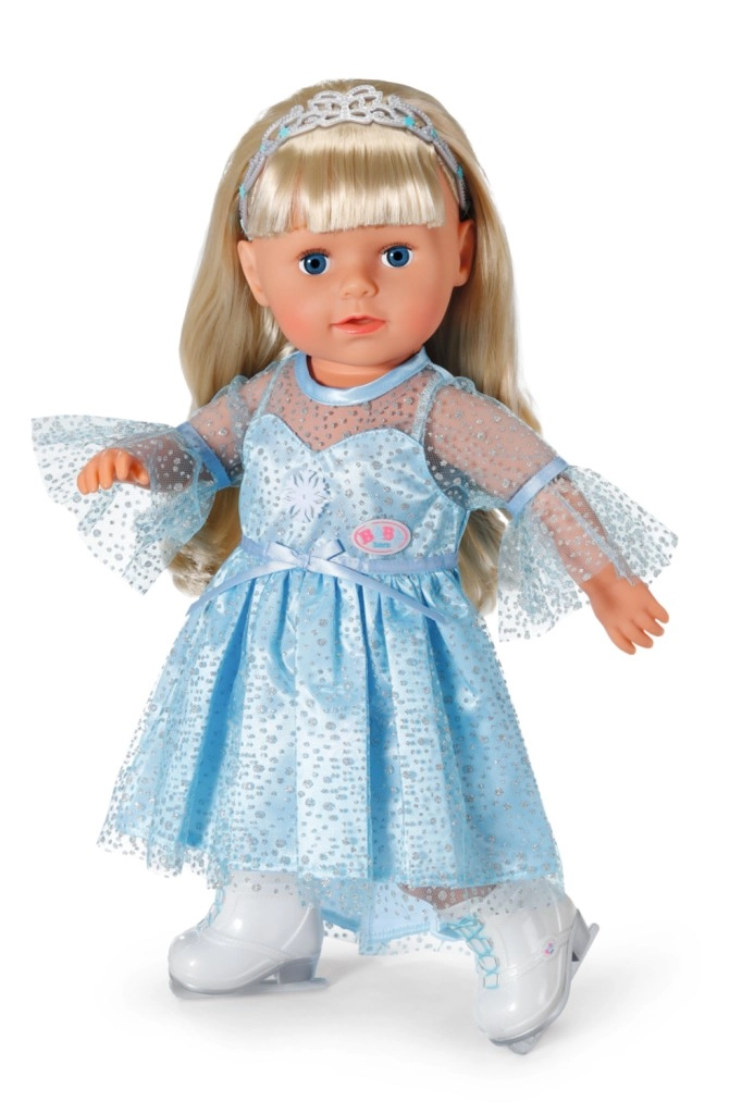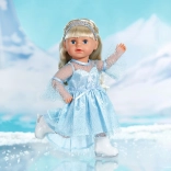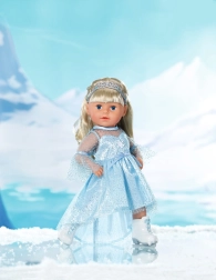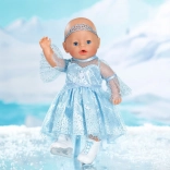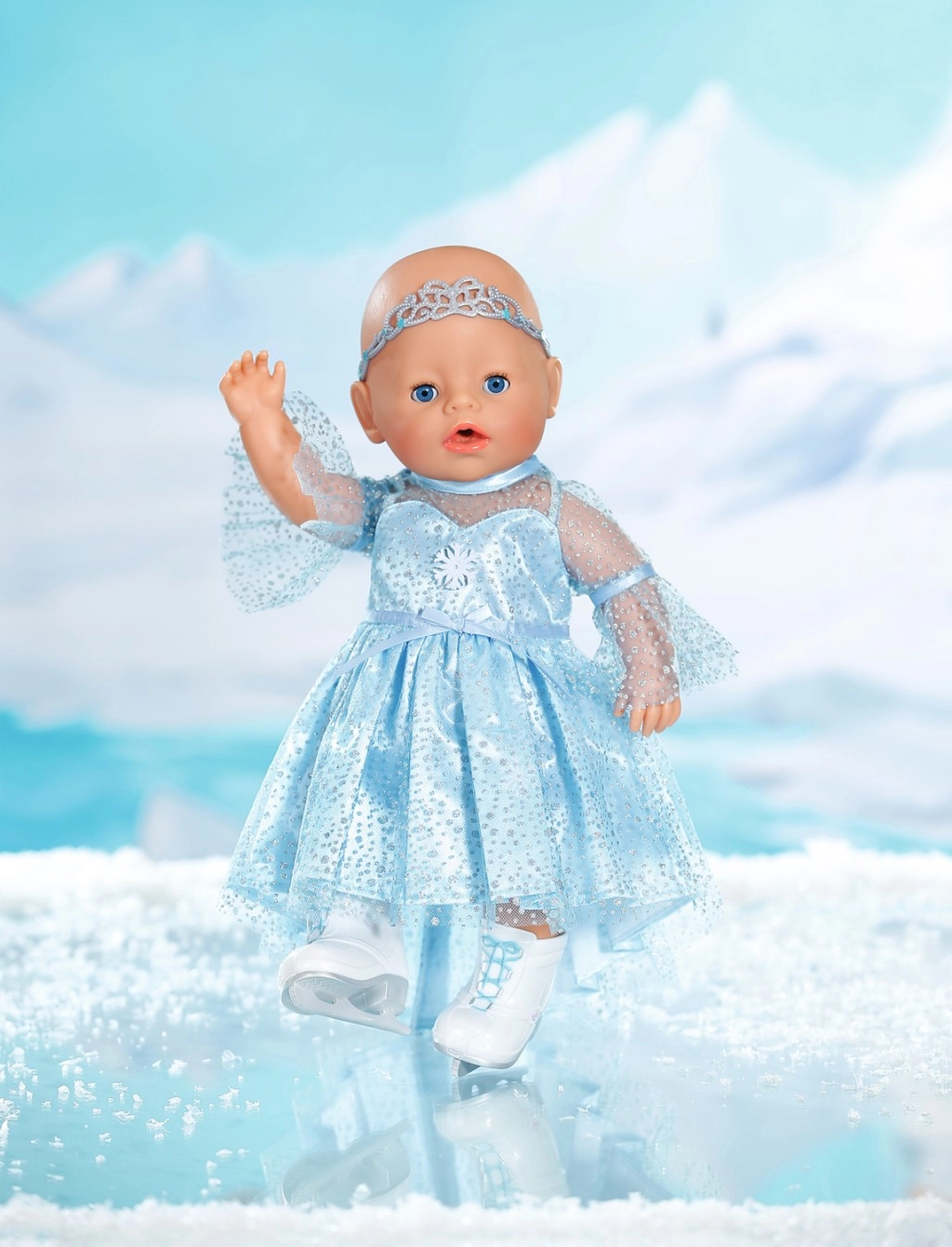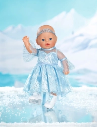 Eleganten komplet za punčke BABY born 43 cm prinaša čar zimskega kraljestva v vsakdanjo igro. Lahkotno bleščečo obleko z nežnim pregrinjalom enostavno oblečete, diadem pa bo pričesko držal na mestu pri vsaki pirueti. Bele čevlje v slogu drsalk podpirajo domišljijo in otroške zgodbe o umetnostnem drsanju.