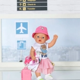 Slogovit potovalni komplet za punčke BABY BORN v velikosti 43 cm spremeni vsako igro v pravo pustolovščino. Vsebuje ujemajočo se jakno z motivom NY, majico z medvedkom, rožnato tilasto krilce, kapo, čevlje in praktičen mini kovček. Idealno za kreativno potovalno igro, preprosto oblačenje in dolgotrajno zabavo.